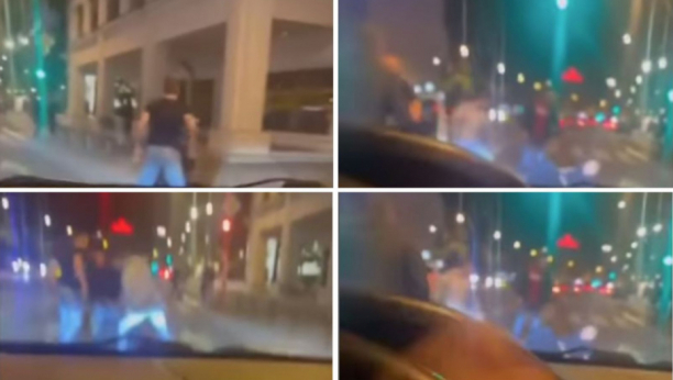 Na društvenim mrežama pojavio se video-snimak stravične tuče. Na njemu se vidi se mladići udaraju na pešačkom prelazu, padaju po haubama, šutiraju se i jure oko automobila.
