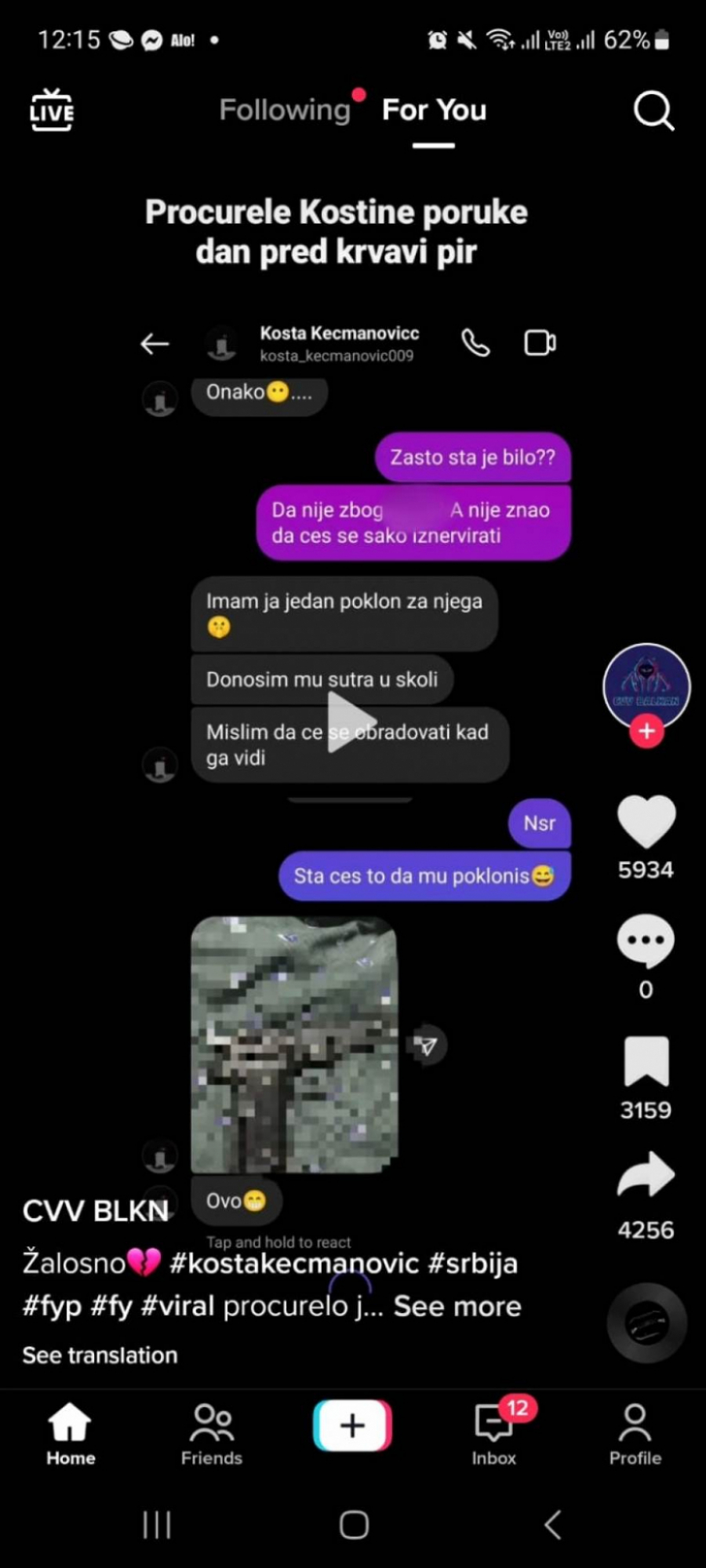 "IMAM JA JEDAN POKLON ZA NJEGA" Mrežama kruži navodna prepiska Koste sa drugom dan uoči masakra (FOTO)