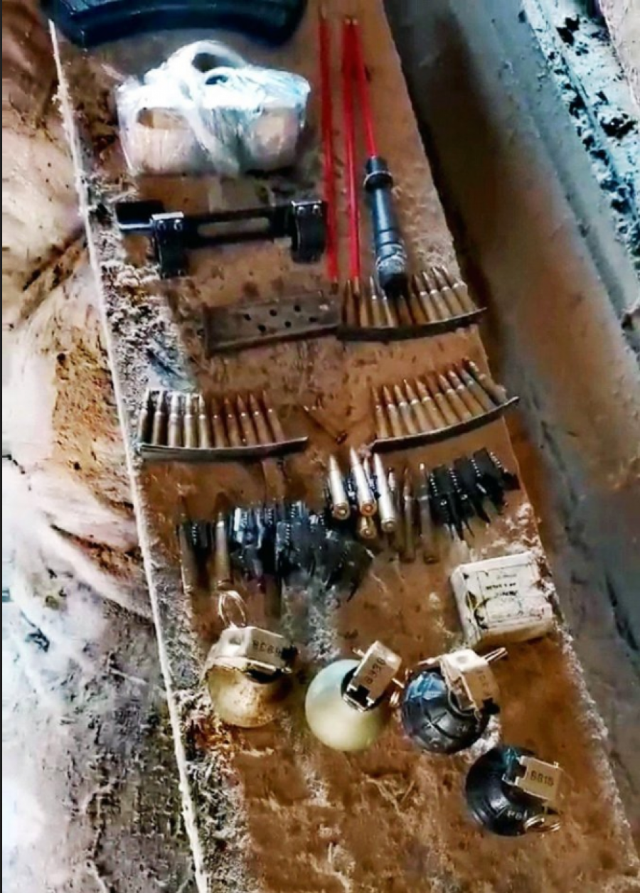 lovački nož i druge delove oružja, 164 metka različitog kalibra, 13 lovačkih patrona, 12 čaura, 4 signalna metka i 25 komada karabinske municije.