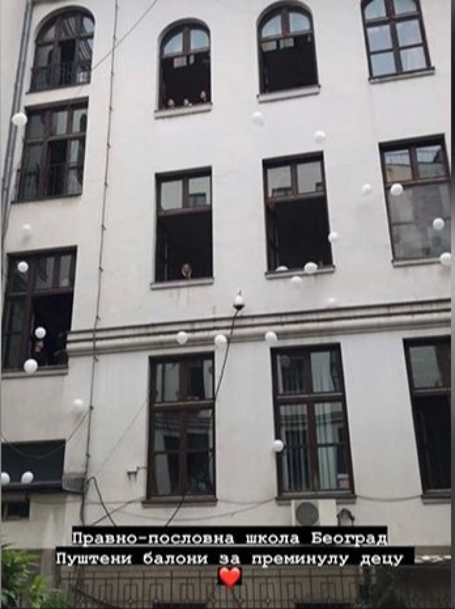 Naime, đaci ove škole izašli su na prozore i pustili bele balone u znak saosećajnosti sa nastradalima u jezivom masakru.
