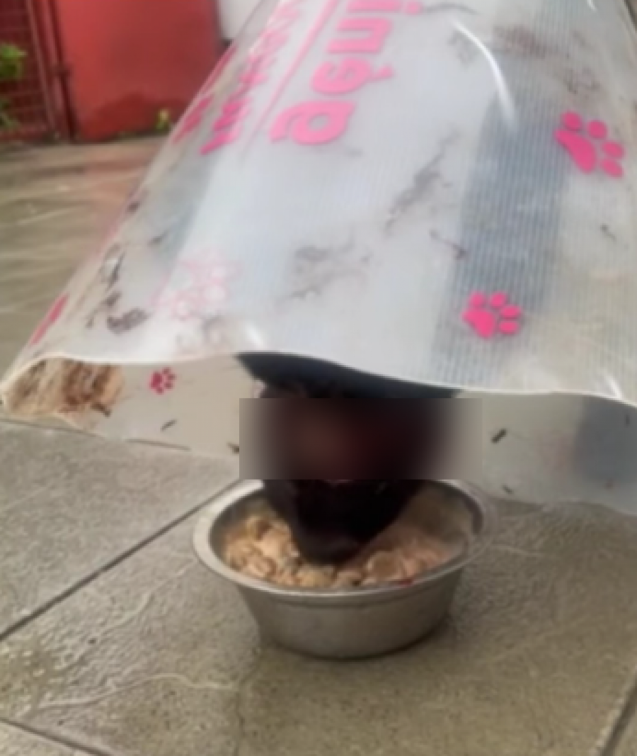 Povrede nastale usled vremenski dugog i bespomoćnog nošenja čvrsto zalepljene izolir trake oko njuške, mučenoj keruši izazvale su na tom mestu nekrozu sve do kosti.
