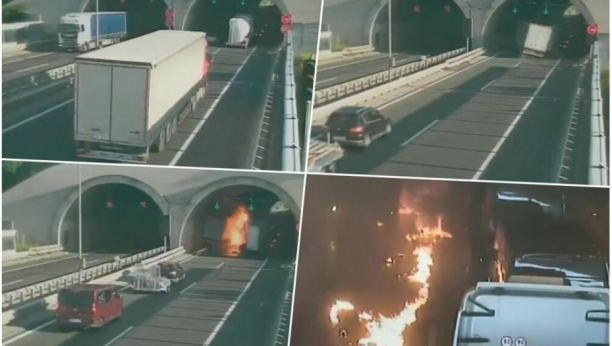 HAOS U TUNELU! Teretni kamion U PUNOJ BRZINI naleteo na cisternu u koloni - GORE VOZILA (VIDEO)