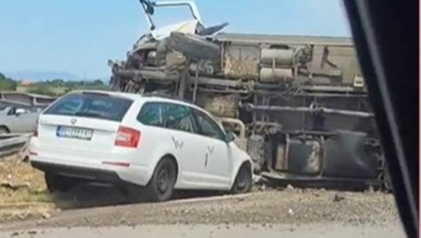 TEŠKA SAOBRAĆAJKA KOD NIŠA Prevrnuo se kamion, automobil u punoj brzini naleteo na njega (VIDEO)