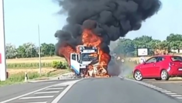 Vatra je zahvatila i teretno vozilo nakon čega se formirala buktinja i gusti crni oblak dima koji se video kilometrima.