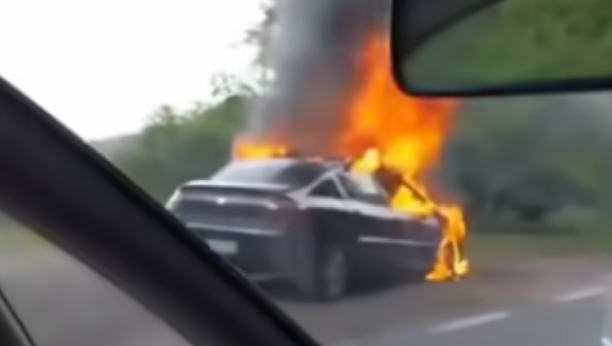 Za sada nije poznato kako je došlo do toga, a kako se može videti na snimku vatra je zahvatila celo vozilo.