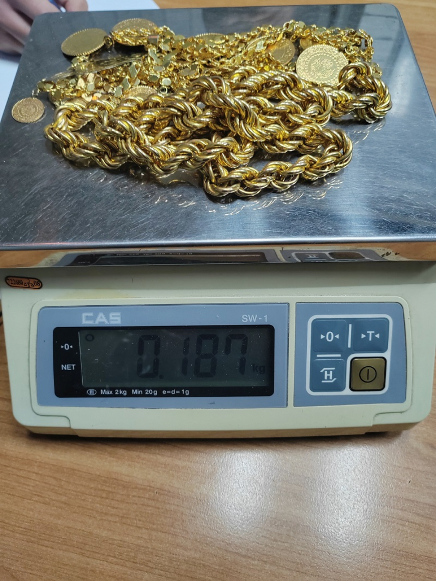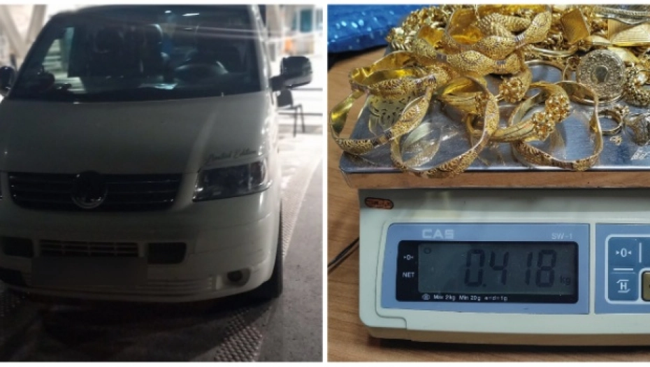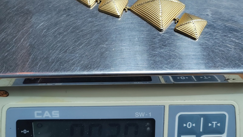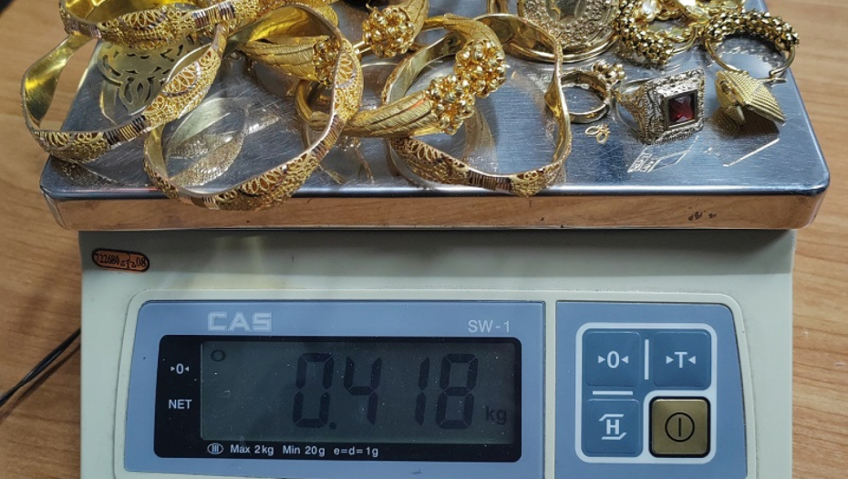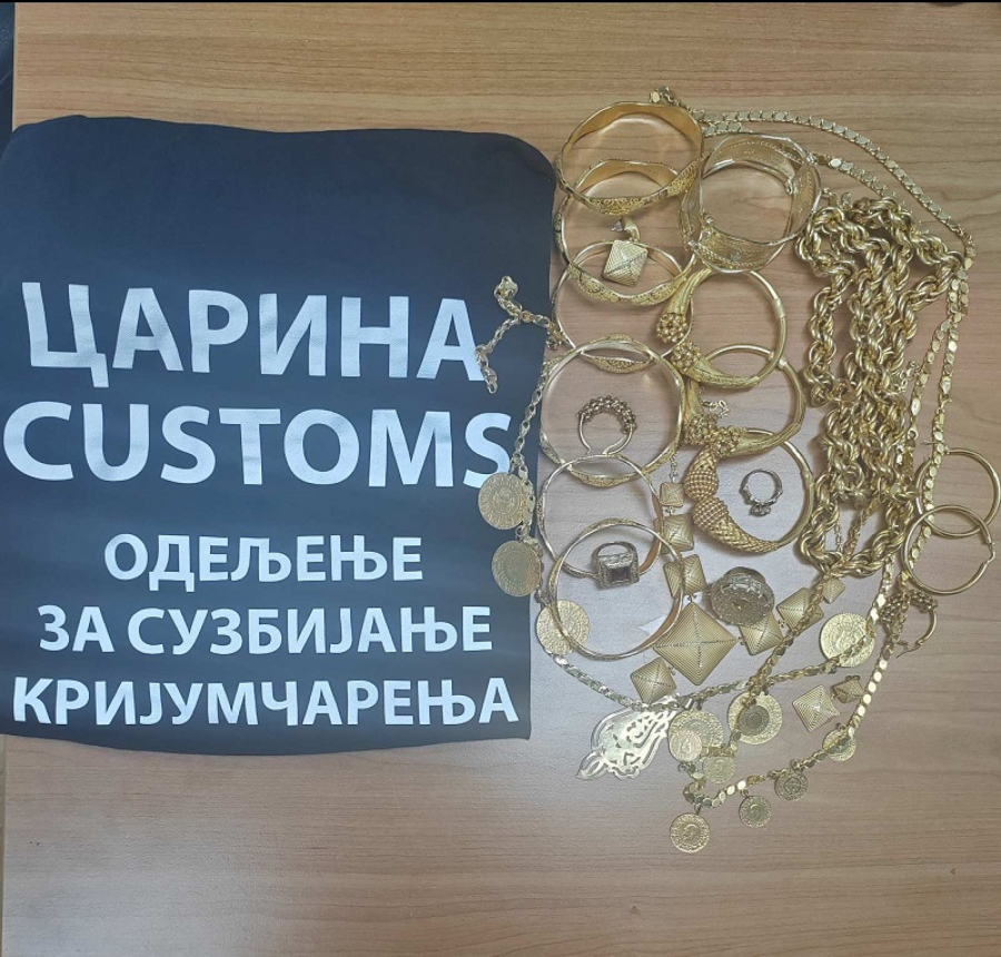 Carinici su ipak odlučili da detaljno pregledaju vozilo i tada su u tašni vozačeve supruge pronašli vrećicu punu zlatnog nakita koji putnici nisu prijavili. Pronašli su 10 zlatnih narukvica, tri zlatna lanca, jednu ogrlicu, tri prstena i tri para minđuša, ukupne težine 418 grama.