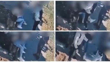 Oni međusobno pričaju, a zatim jedan tinejdžer šutira devojčicu u glavu.