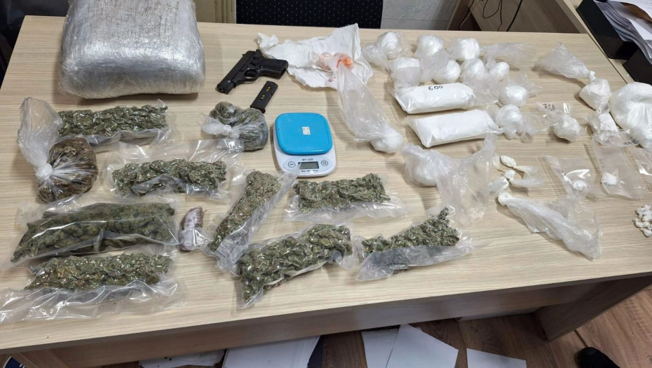 Policija je prilikom pretresa kuće osumnjičenog pronašla 22 paketića sa oko 312 grama praškaste materije nalik na kokain, 19 paketića sa oko 2,3 kilograma amfetamina, 12 paketa sa oko 2,1 kilograma marihuane, 101 komad sintetičke droge ekstazi, 527 grama kofeina, 2 tablete rivotrila, jednu elektronsku vagicu, kao i jedan pištolj NN marke sa 8 metaka u okviru.