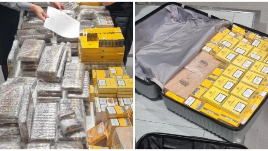 Potom je u zelenom kontrolnom prolazu zaustavljen i 44-godišnji putnik, koji je putovao istim letom, a u čijim koferima je pronađeno 4.900 kubanskih cigarilosa i 723 cigara, vrednih skoro devet miliona dinara.