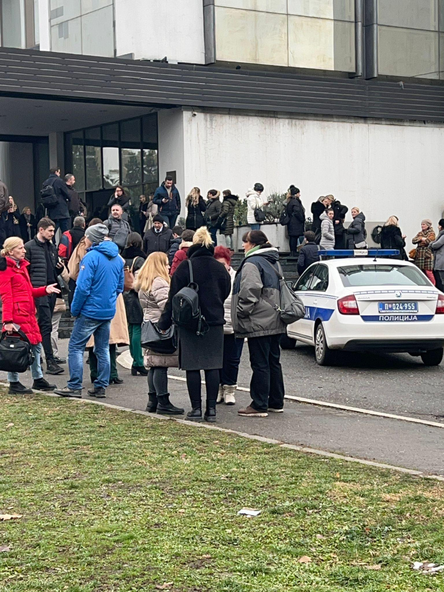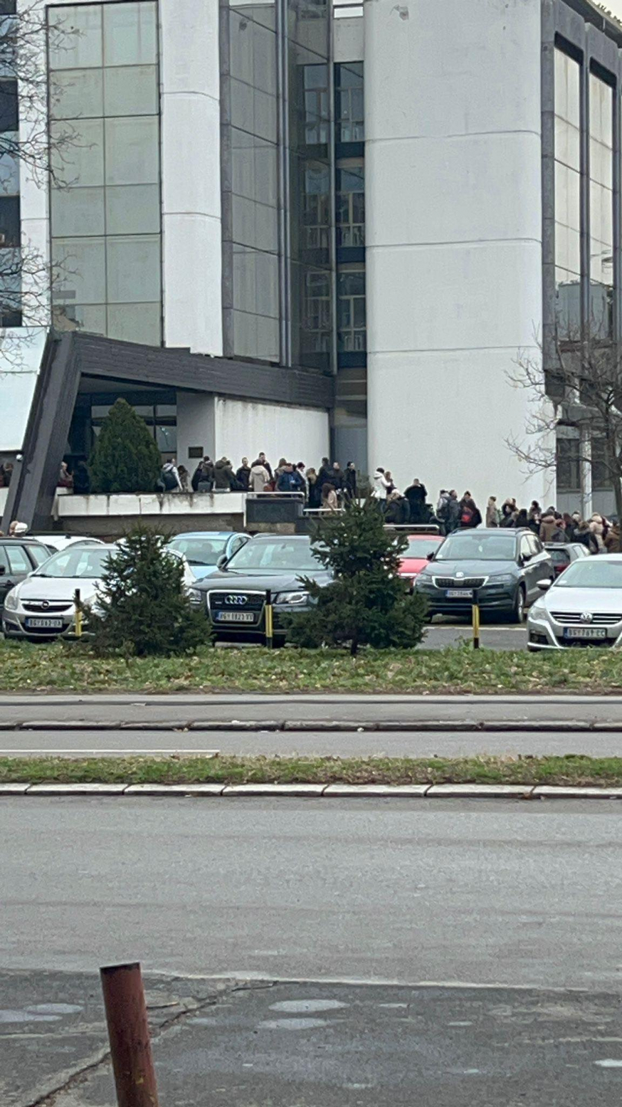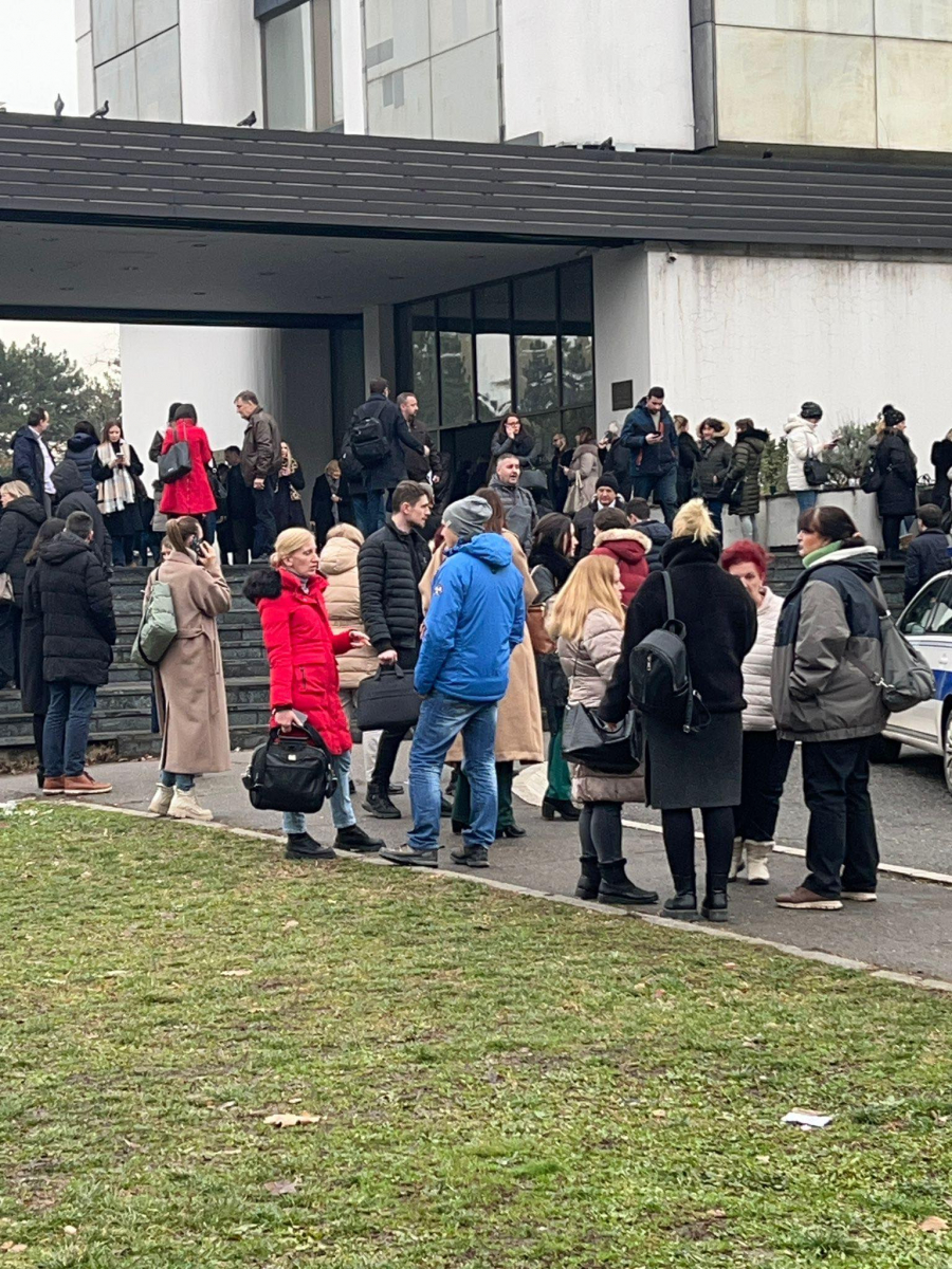 Na fotograjama sa lica mesta može se videti veliki broj ljudi koji su napustili zgradu suda nakon dojave o postavljenom eksplozivu.
