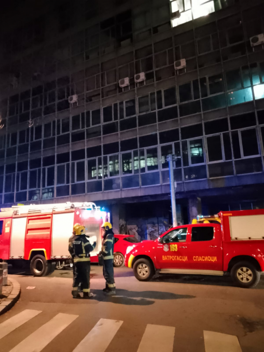 Vatrogasci su ušli i u zgradu Borbe, a saobraćaj u Kosovskoj ulici skroz je blokiran i neprohodan za saobraćaj.