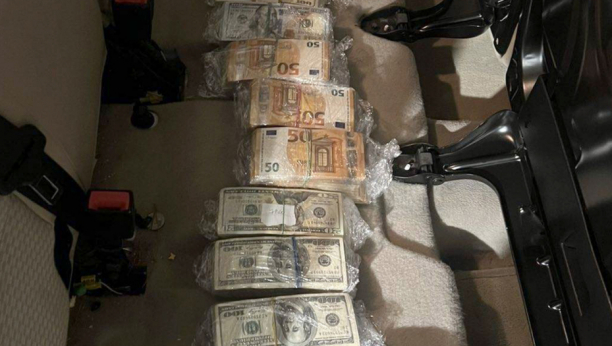 Kako je saopštio MUP, policija je na graničnom prelazu Gradina pregledom automobila marke „mercedes“ u kojem su se nalazili osumnjičeni, ispod sedišta vozila pronašla 77.950 evra i 185.500 američkih dolara za koje su, kako se sumnja, O. Š. i O. K. znali da potiče od kriminalne delatnosti.