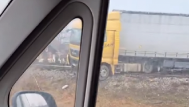 Kako se vidi na snimku postavljenom na mrežama, vidi se kamion koji je preprečio šine.