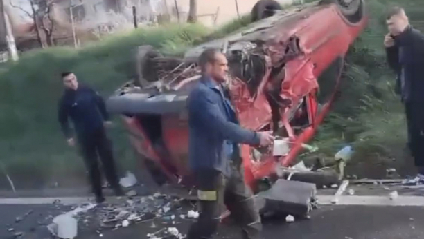 AUTO SE PREVRNUO NA KROV KOD "LASTE" Strašna saobraćajka od jutra rana, gume i srča po putu (FOTO)
