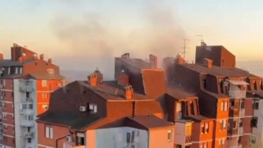 Gori potkrovlje zgrade i širi se velika količina dima.