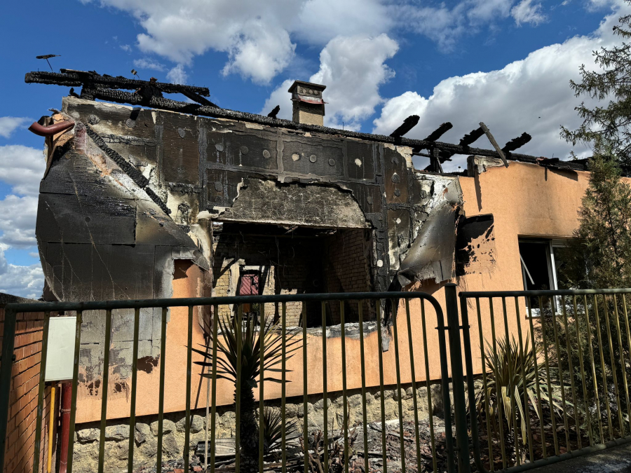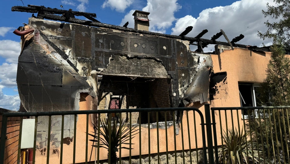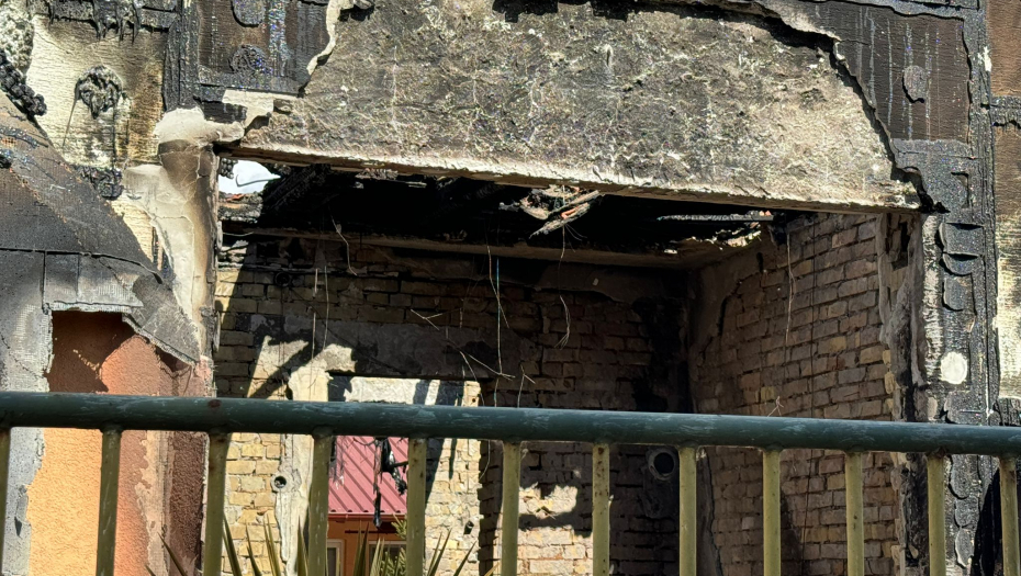 U dvorištu porodične kuće Dragana i Stane Anušić, oseća se samo miris paljevine a po podu se nalaze nagoreli delovi koju su otpadali u toku požara.