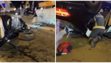 Vozilo marke "mercedes" potpuno je uništeno u stravičnoj saobraćajnoj nezgodi koja se sinoć dogodila, oko 22 sata kod isključenja za autoput iz pravca Sajma ka Autokomandi, u Beogradu, piše Informer.
