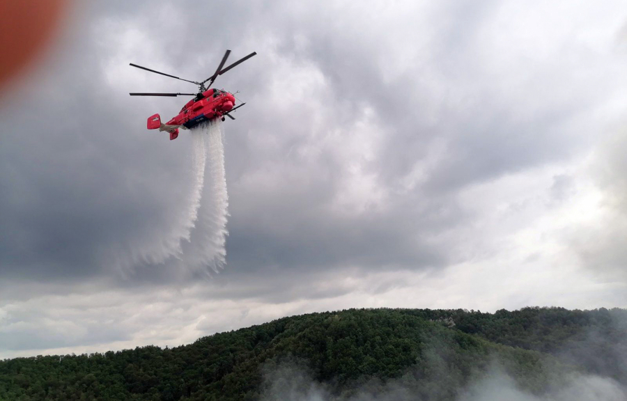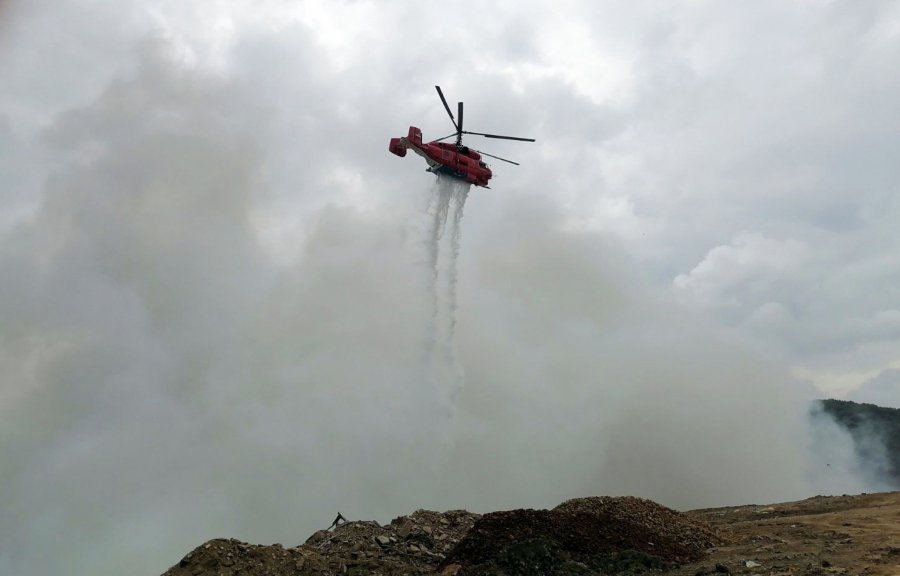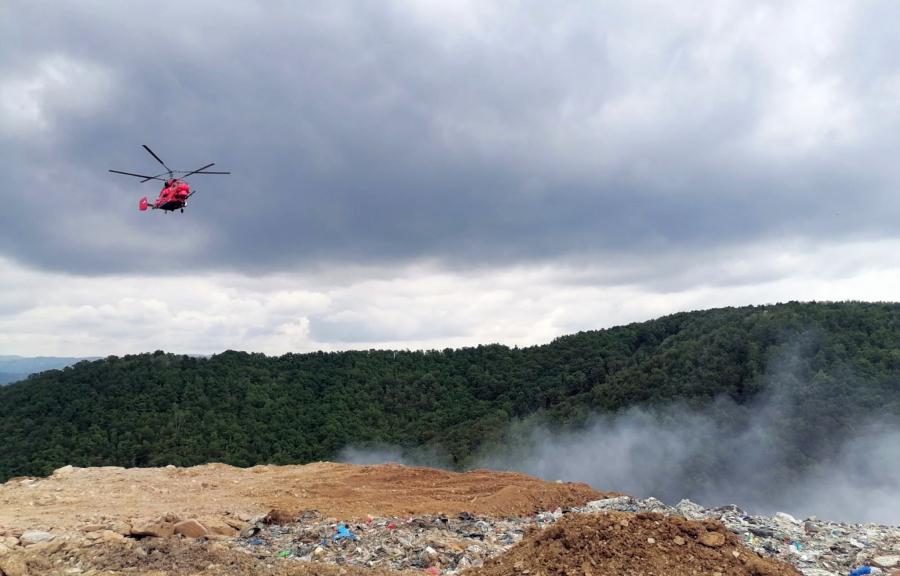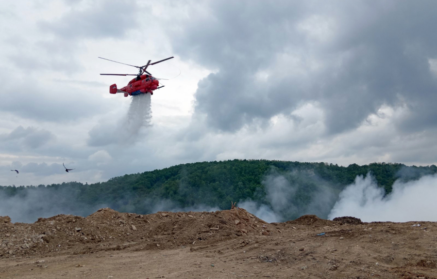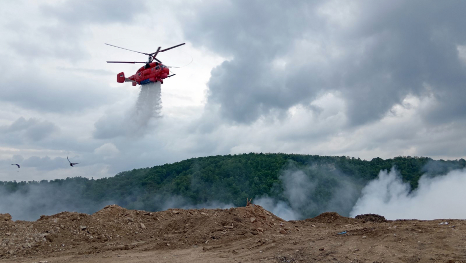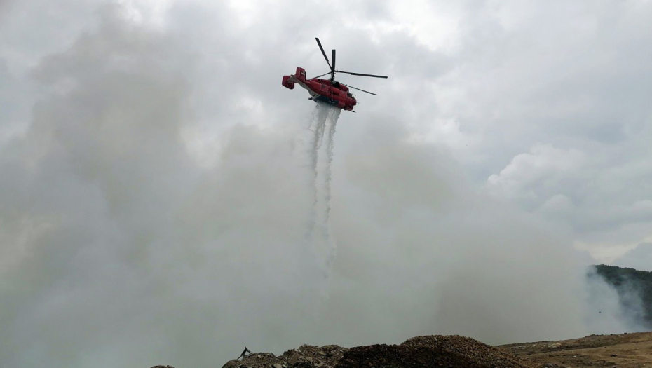 Helikopteri kamov KA 32 i super puma H215 velike nosivosti vode, zbog razbuktavanja požara usled obrušavanja desne strane deponije, pružiće podršku gradskim i komunalnim službama koje su angažovane na zatrpavanju požara peskom.