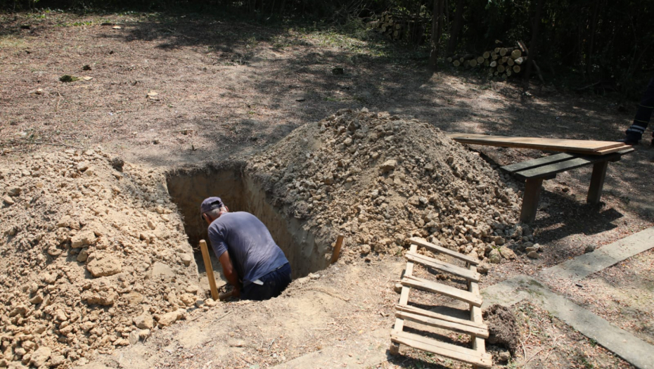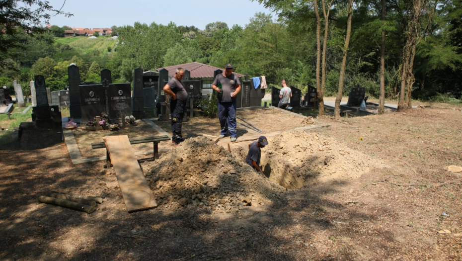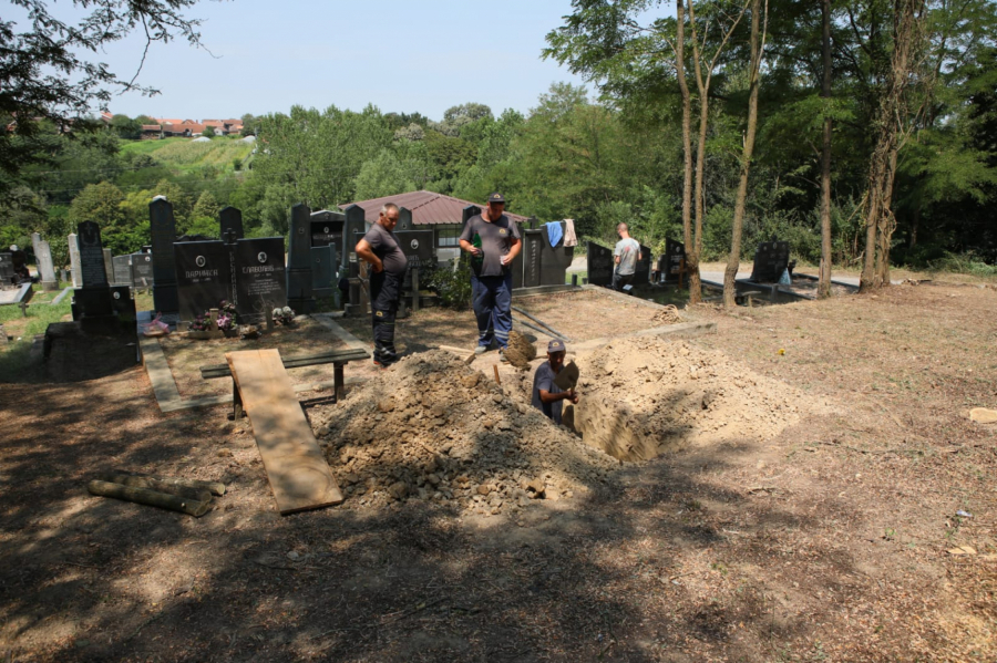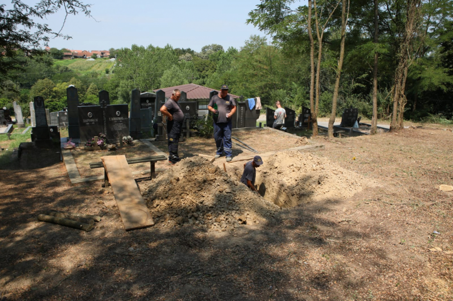 Nakon održanog opela u crkvi, duga povorka na čelu sa Nikolinim kumom, uputila se ka grobnom mestu na seoskom groblju gde će mladi policajac biti sahranjen.