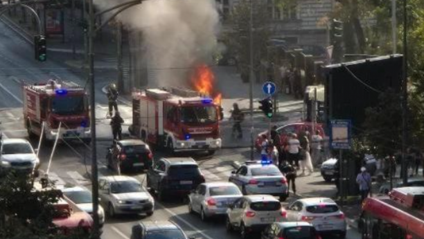 KOMBI ZA PREVOZ NOVCA IZGOREO NASRED ULICE Stravičan požar u centru Beograda, ljudi se zabrinuli za novčanice (FOTO)