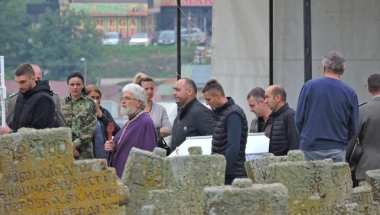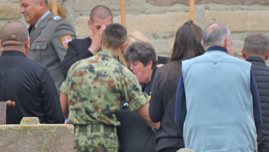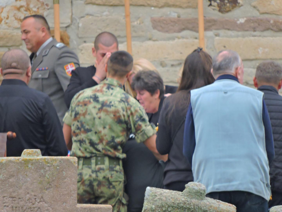 Na groblju u Petrovoj crkvi je na desetine pripadnika Vojske Srbije koji stoje pognute glave brišući suze.