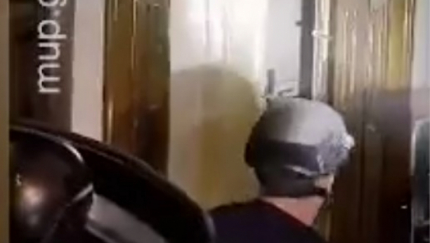 "VLADIMIRE, BACI SEKIRU!" Snimak hapšenja na Vračaru, nasrnuo na policiju iz mračnog hodnika (VIDEO)