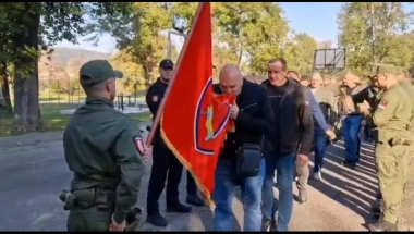 Naime žandarme su kolege ispratile kordonom praćenim aplauzom sa zastavom koju su novopečeni penzioneri ljubili.