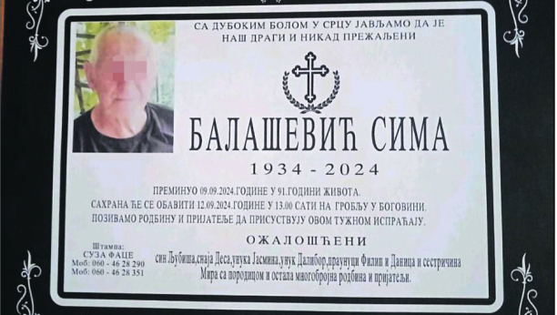 Podsetimo, telo Sime Balaševića iz Bogovine kraj Boljevca pronađeno je 9. septembra vezano za stolicu u njegovoj porodičnoj kući, kada je bio nasmrt pretučen, mučen i izboden. Balašević je bio vlasnik kafane, te se pretpostavlja da je motiv napada na nesrećnog starca koristoljublje!