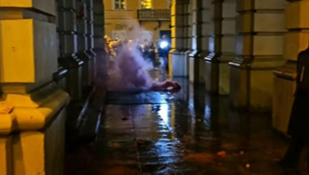Grupa učesnika protesta ubacila je, pored ostalog, baklje u zgradu Gradske kuće u Novom Sadu nakon što je polomila prozore na objektu, zbog čega je prizemlje zgrade, gde se nalazila policija, zahvatio požar.