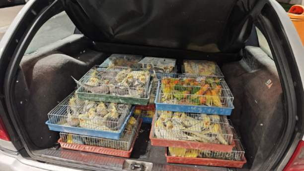 Prilikom detaljnog pregleda jednog automobila, u prtljažniku je pronađeno osamnaest kaveza prepunih ptica.