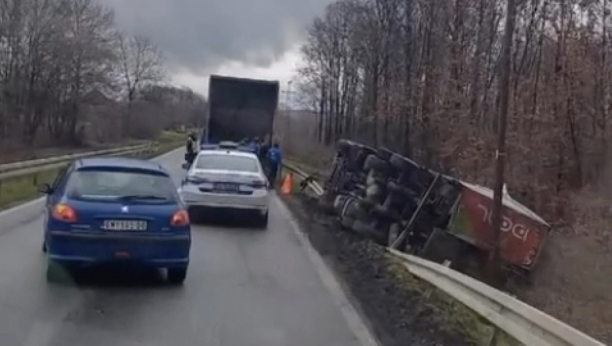 KAMION SLETEO S PUTA ČAČAK- KRAGUJEVAC Teretnjak završio u kanalu, na bočnoj strani