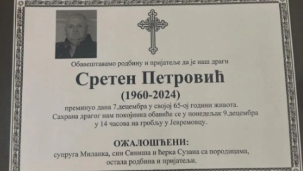 - Koliko je bio dobar čovek i poslodavac govori i to koliko je ljudi došlo na njegovu sahranu. Sreten je kod groblja u selu kupio novi plac gde je planirao da gradi novu halu - rekla je na kraju žena koja je insistirala na anonimnosti.