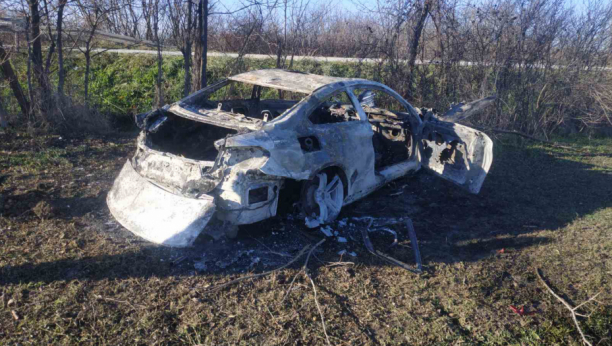 Pored glavnog puta Natalinci – Kloka potpuno je izgorelo vozilo koje je pre toga iz za sada ne utvrđenih razloga sletelo sa kolovoza.