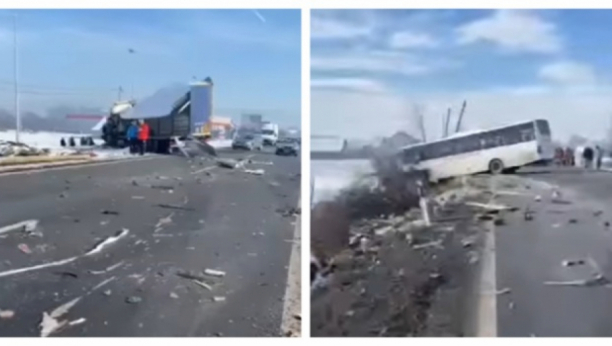 Vozač kamiona zadobio je teške povrede, dok su vozač autobusa i jedna putnica lakše povređeni.