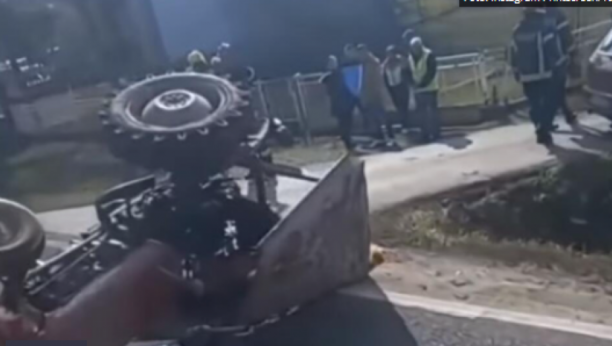 Traktor se prevrnuo nakon sudara sa automobilom.