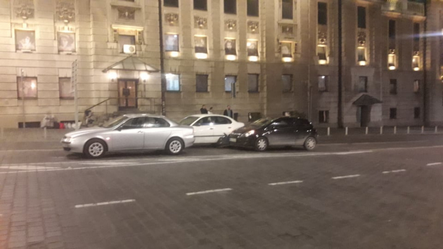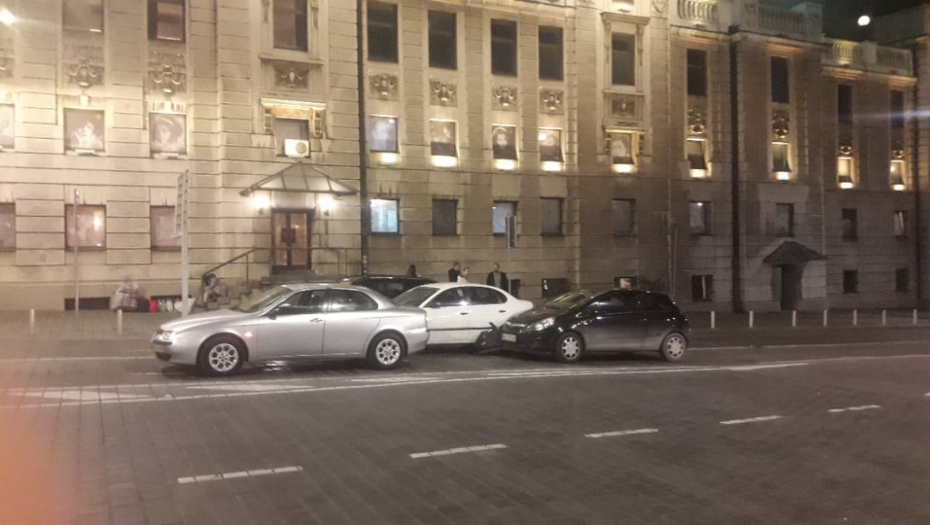 Večeras je kod Narodnog pozorišta u Beogradu došlo do sudara čak tri vozila, "opel korsa", "seat cordoba" i "alfa romeo".