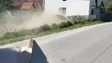 Vozač putničkog automobila je, iz za sada neutvrđenih razloga, prešao u suprotnu kolovoznu traku, a zatim sleteo sa puta i udario u zid porodične kuće. Čitav događaj zabeležio je vozač koji se kretao iza njega.