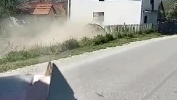 KAMERA SVE SNIMILA Prešao preko kolovoza, polomio čitav voćnjak i zalepio se uz zid kuće - neverovatna saobraćajka kod Guče (VIDEO)