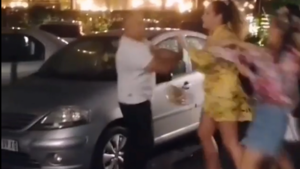 Naime, na snimku se vidi kako devojka, vidno uznemirena i ljuta, pobesnelo udara po muškarcu koji uplašeno ide unazad. Pretpostavlja se da je reč o taksisti s obzirom na to da se on sklanja ka prakiranom taksi vozilu.