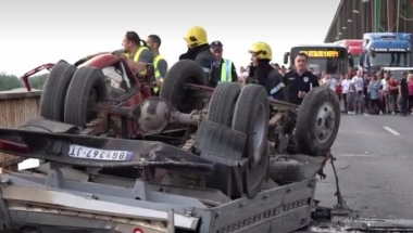 Pogunule su dve osobe koje su bile u kamionu, a oni su pali iz kabine preko ograde.