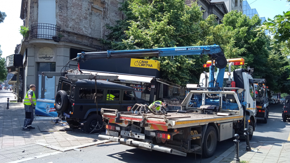 Do sudara na uglu Svetozara Markovića i Kralja Milana došlo je, kako se nezvanično navodi, kada je vozilo BMW stranih registracionih oznaka prošlo kroz crveno, zbog čega je MUP-ov džip skrenuo kako bi izbegao nesreću i udarilo u kiosk.