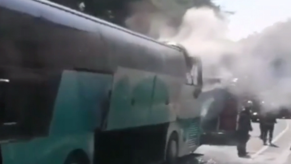 Zapalio se motorni deo autobusa, a požar je ugašen.