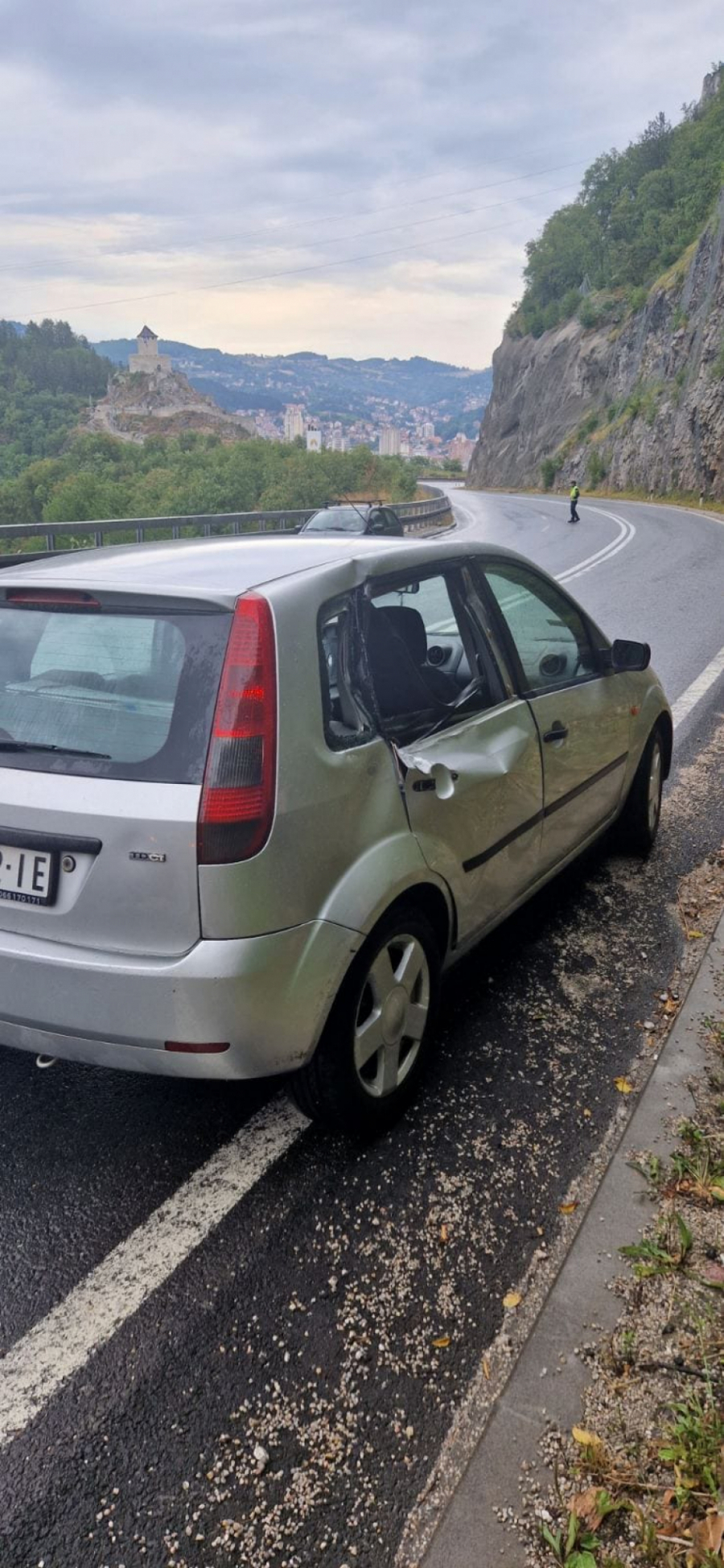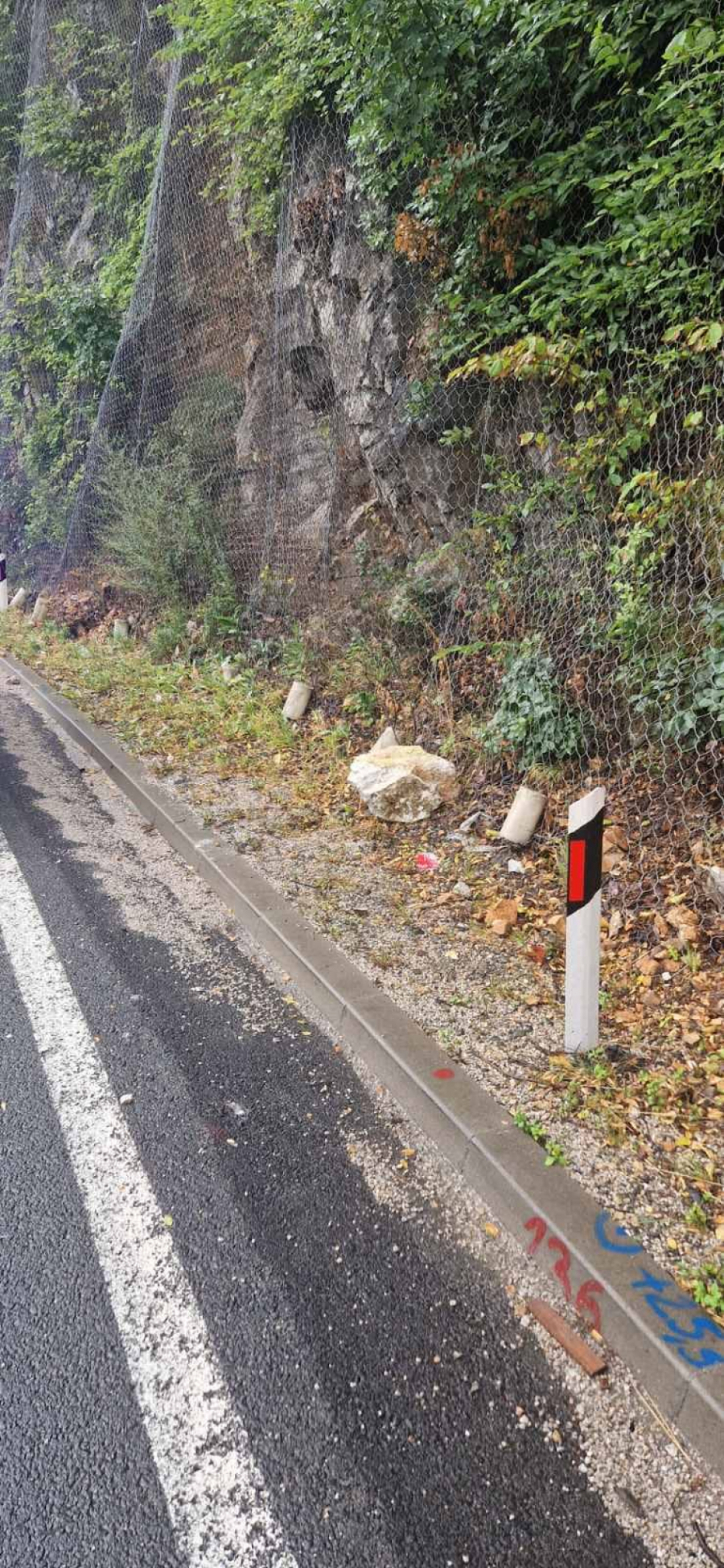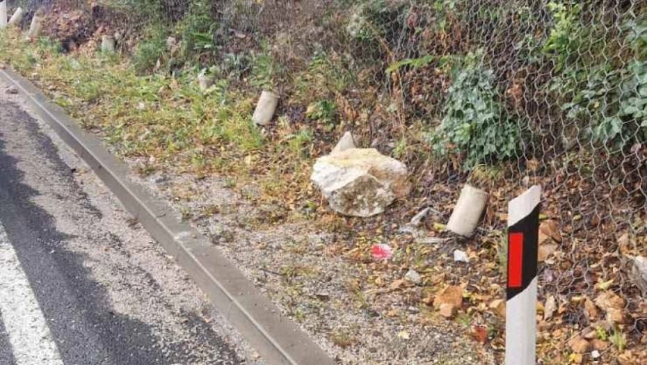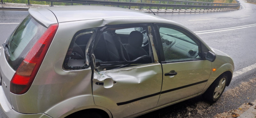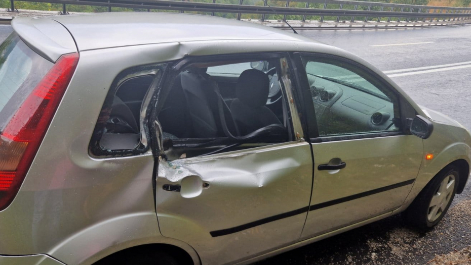 Tokom jutarnjih sati sa stene koja se nalazzi pored puta odvalio se ogroman kamen i pao na putnički automobil koji se kretao desnom kolovoznom trakom.