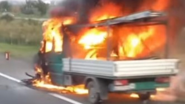Na društvenim mrežama pojavio se snimak požara na teretnom vozilu, koje se isključilo sa puta.