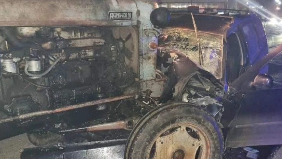 U Velikim Crljenima kod Lazarevca večeras je došlo do direktnog sudara automobila i traktora.