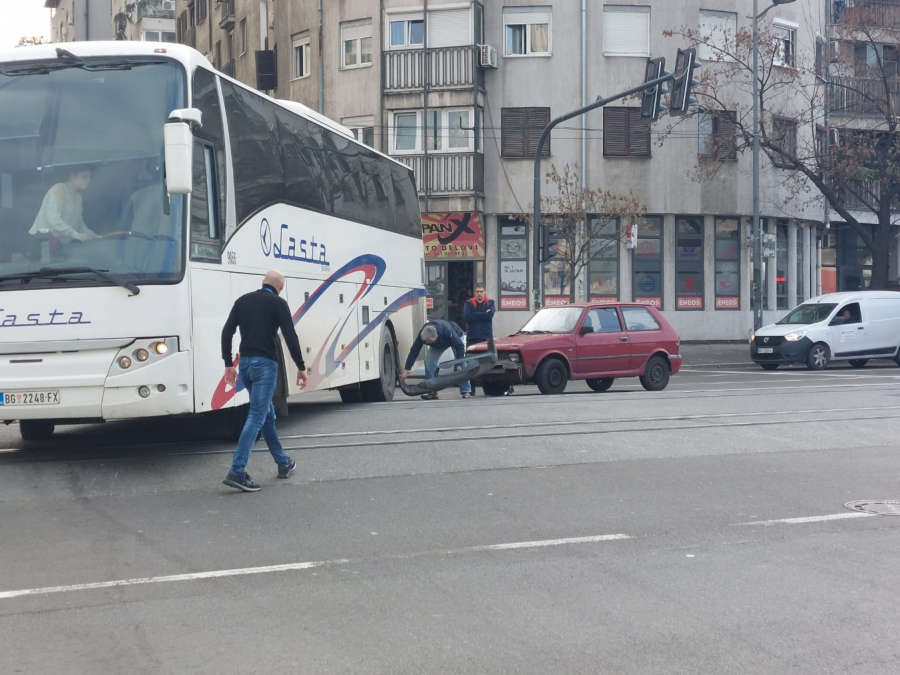 U Savskoj uluci u Beogradu sudarili su se automobil i autobus.