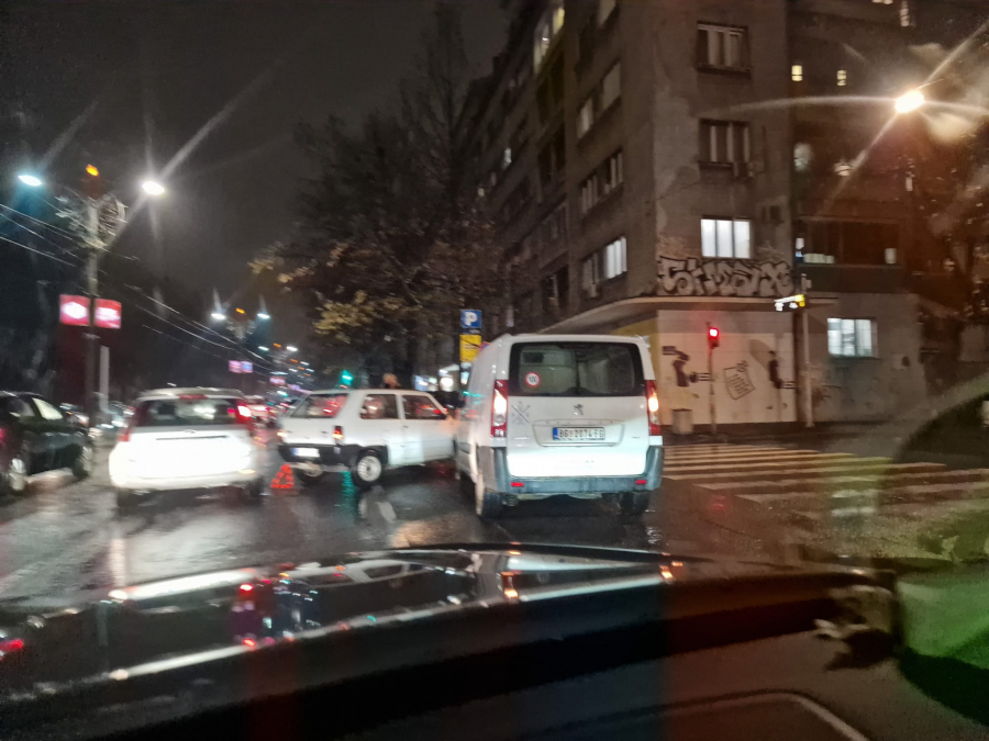 KARAMBOL U BULEVARU KRALJA ALEKSANDRA Sudar automobila i kombija, totalni kolaps u saobraćaju (FOTO)