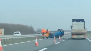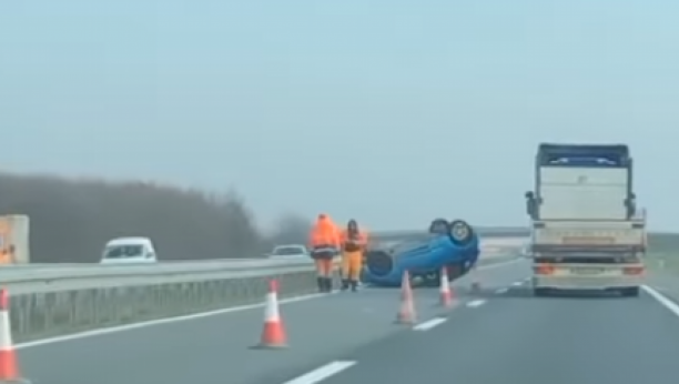 AUTOMOBIL SLETEO SA PUTA I PREVRNUO SE Nezgoda na auto-putu kod Šimanovaca (FOTO)