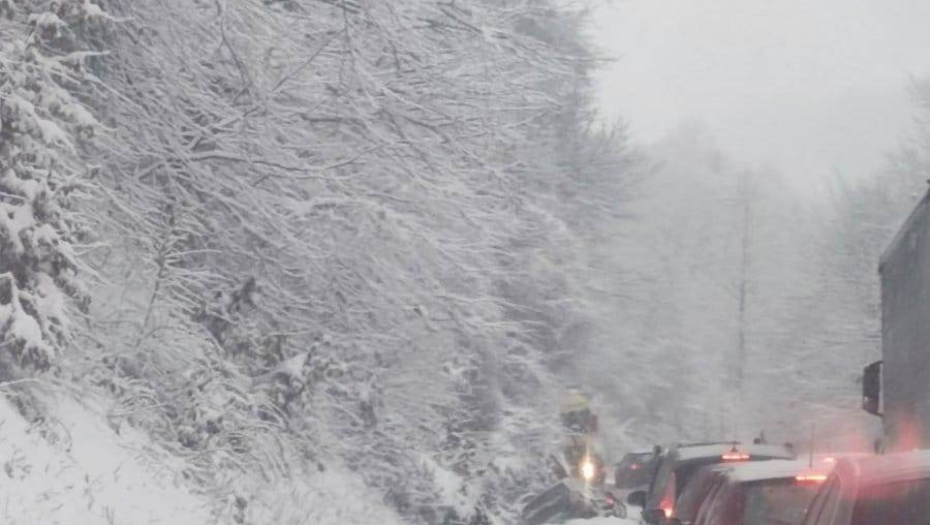 AUTO SLETEO SA PUTA KOD PRIJEPOLJA Sneg napravio kolaps, teška mehanzacija hitno upućena na teren (FOTO)