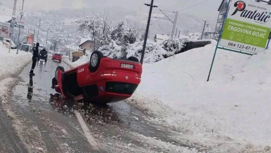 AUTOMOBIL ZAVRŠIO NA KROVU Nesreća u Priboju: Saobraćaj otežan (FOTO)